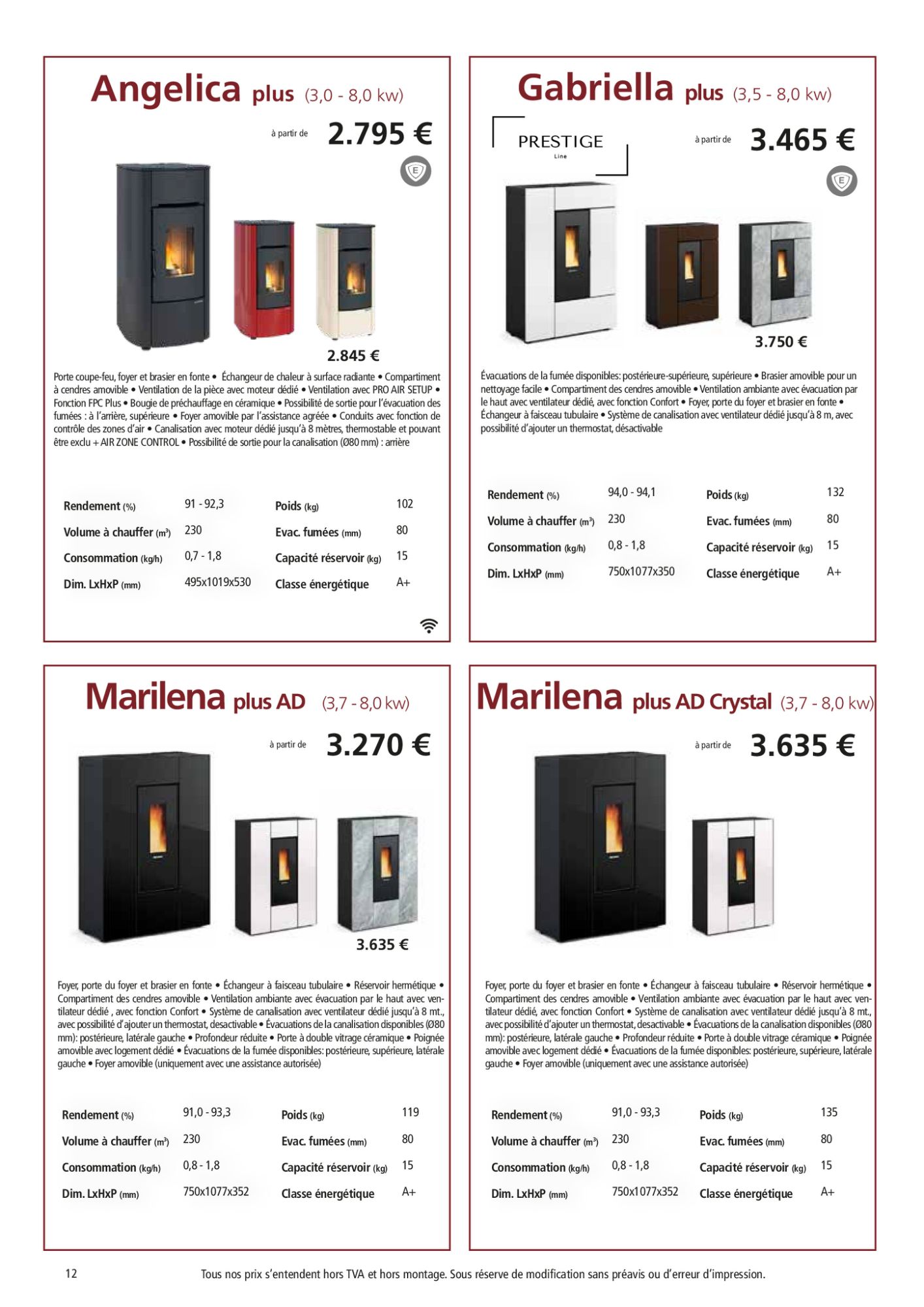 Les prix ci dessous s'entendent hors tva et toujours à 6% pour les maisons de plus de 10ans!